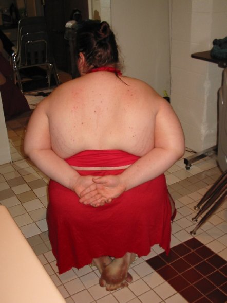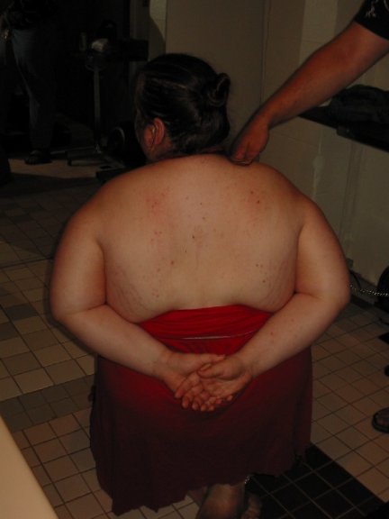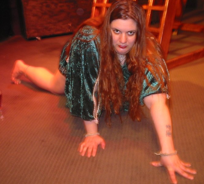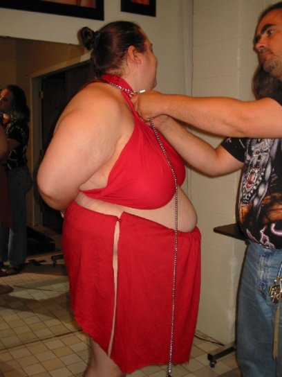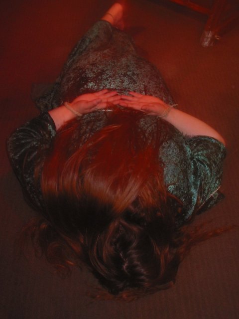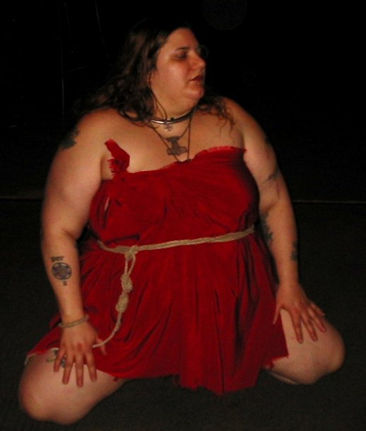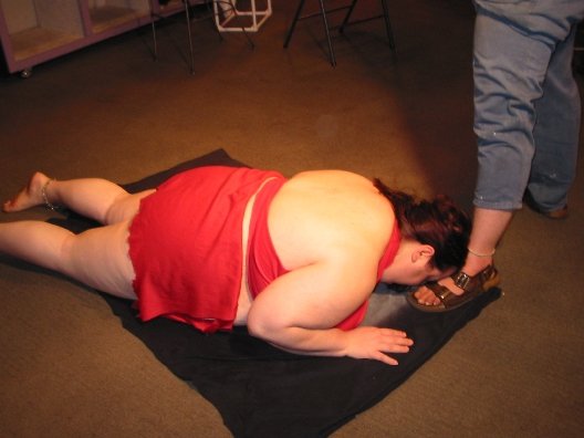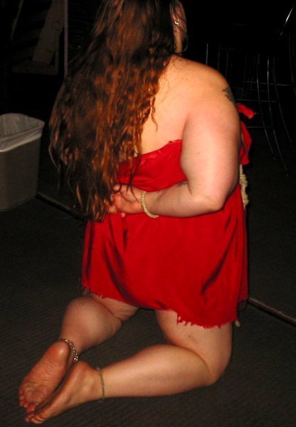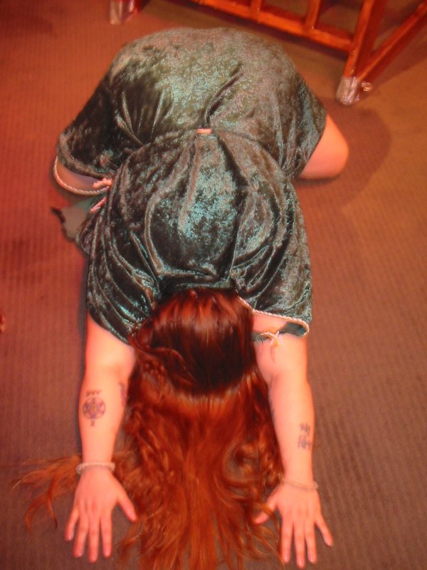 A form of obeisance in which the slave goes to her belly with her head face down to floor or boot/foot and palms down on floor. From this position, the slave can crawl on her belly as directed, lick or kiss the floor/ground or feet of the Master, and/or place the Master's foot on her head or neck, to show her full submission. ![]() Khaos(above)