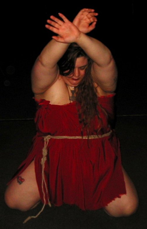 The photo to the right shows Khaos with a variation of Nadu where the palms are turned up. This often signals the slave's exceptional vulnurability or a desire to be used by the Master.